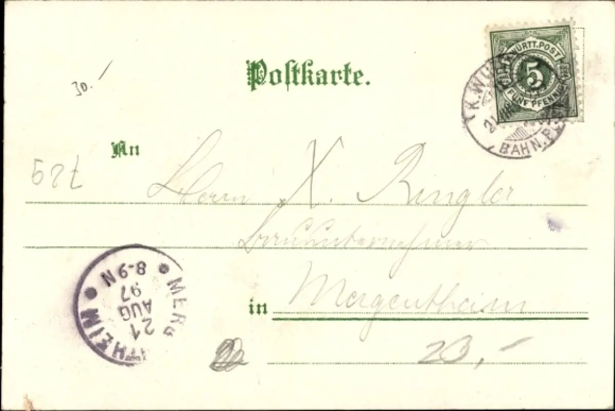 Zustand, siehe Scan, gelaufen, 1897 - ca 14 cm X 9 cm