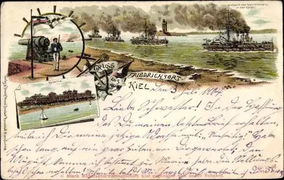 Litho Friedrichsort Kiel in Schleswig Holstein, Kaserne, Seemann, Deutsche Kriegsschiffe, Geschwader