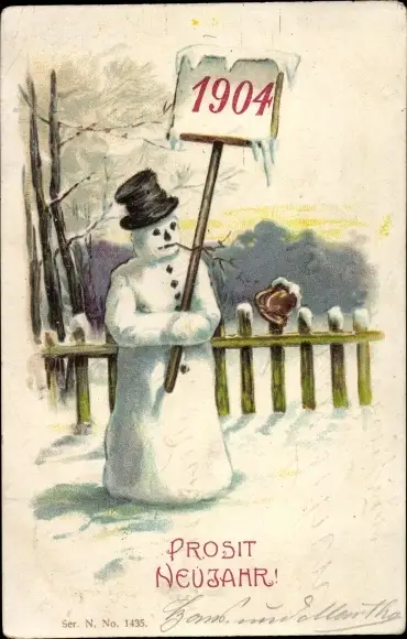Litho Fröhliches Neujahr, Schneemann, Jahreszahl 1904