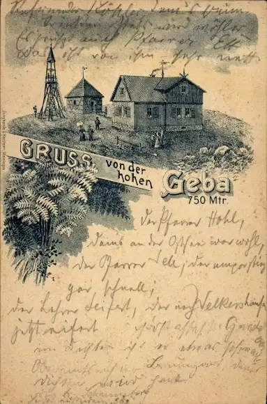 Litho Geba Helmershausen in der Rhön Thüringen, Gebaberg, Hohe Geba