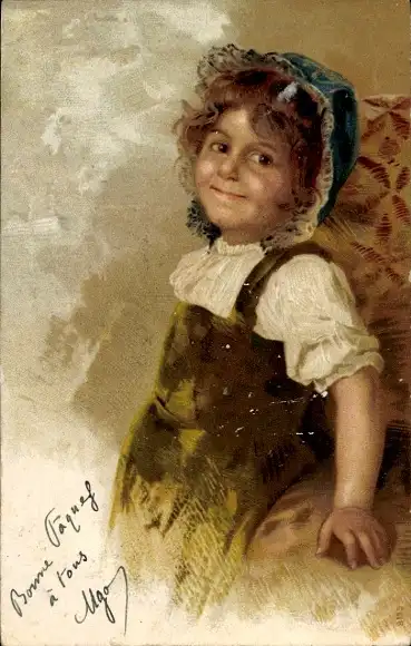 Litho Gemaltes Mädchen-Porträt, Hut, Lächeln