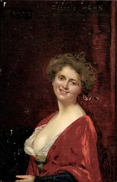 Litho Gemaltes Portrait einer Frau mit Fächer, Werbung