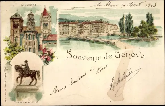 Litho Genève Genf Schweiz, General Dufour, St. Pierre