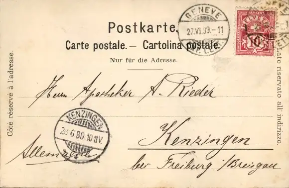 Zustand, siehe Scan, gelaufen, 1899 - ca 14 cm X 9 cm