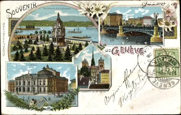 Litho Genève Genf Schweiz, Monument, les mouettes, St. Pierre, Le Theatre