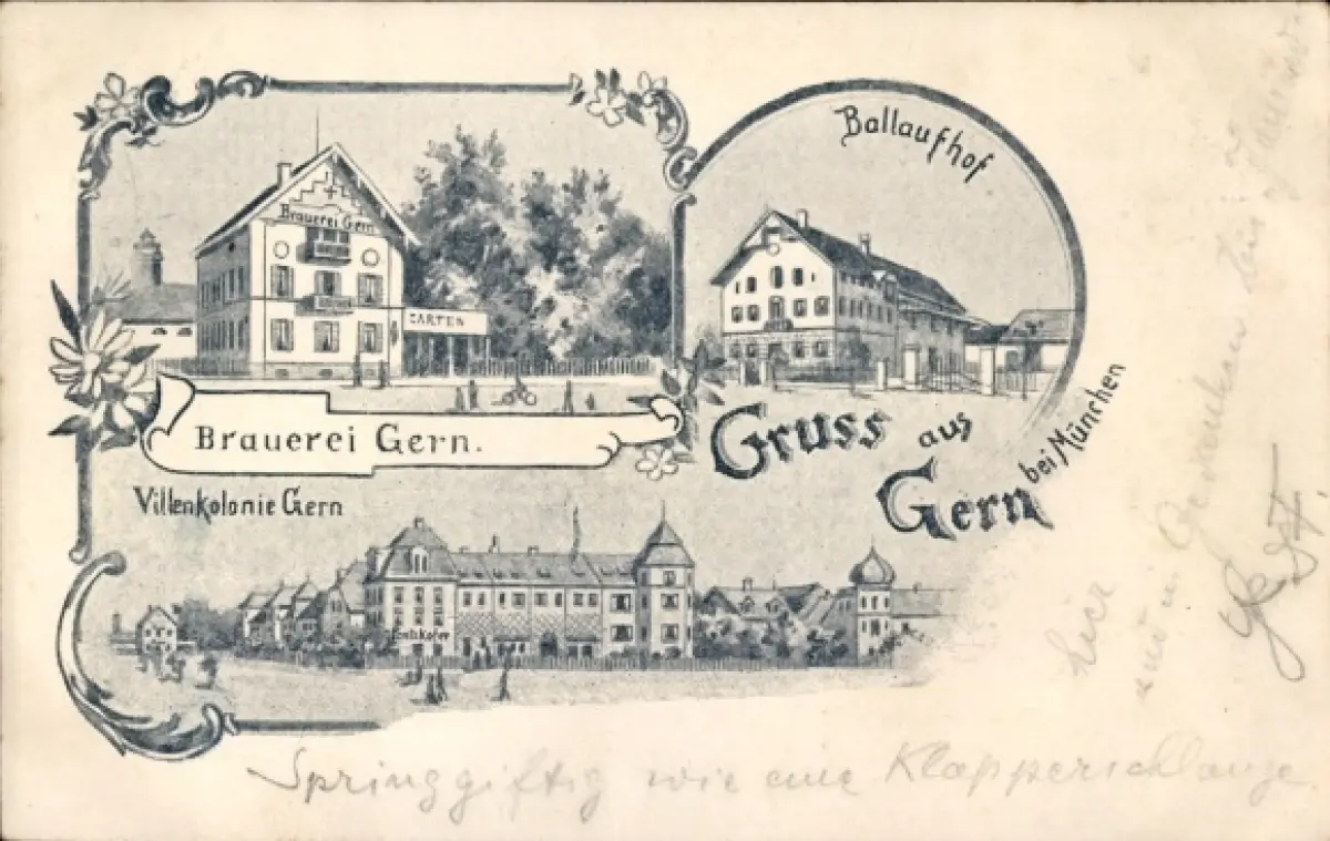 Litho Gern München Bayern, Brauerei, Villenkolonie, Ballaufhof