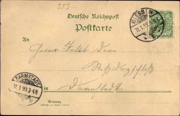 Zustand, siehe Scan, gelaufen, 1899 - ca 14 cm X 9 cm