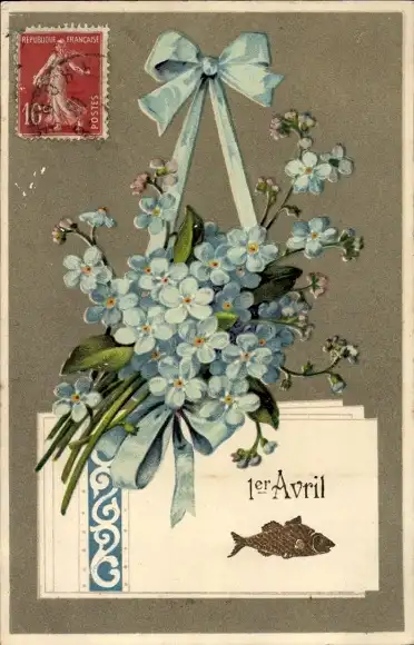 Litho Glückwunsch 1. April, Fisch, Blumen