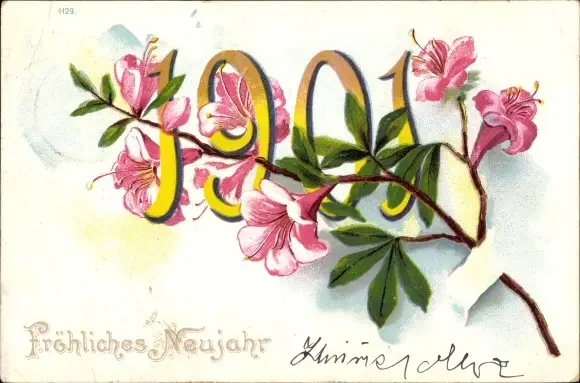Litho Glückwunsch Neujahr 1901, Blühende Blumen