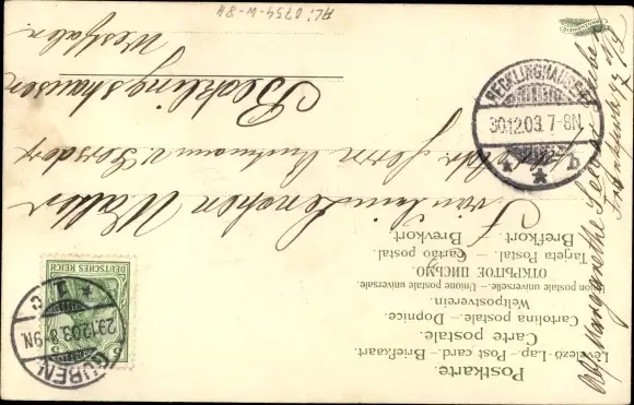 Zustand, siehe Scan, gelaufen, 1903 - ca 9 cm X 14 cm