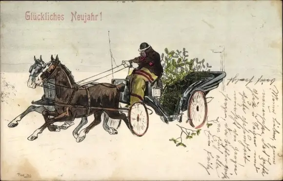 Ansichtskarte, Postkarte, Kutsche, Pferdegespann, Droschke, chariot, carro