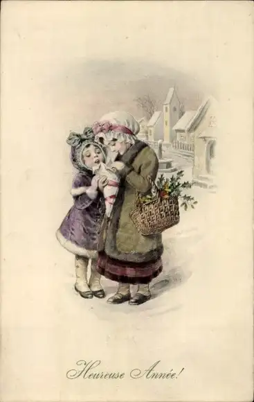 Litho Glückwunsch Neujahr, Mädchen