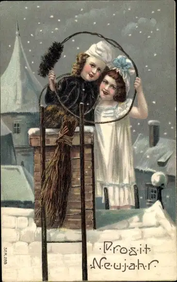 Litho Glückwunsch Neujahr, Schornsteinfeger