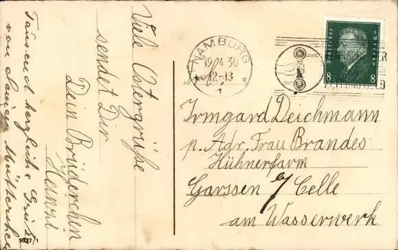Zustand, siehe Scan, gelaufen, 1930 - ca 14 cm X 9 cm
