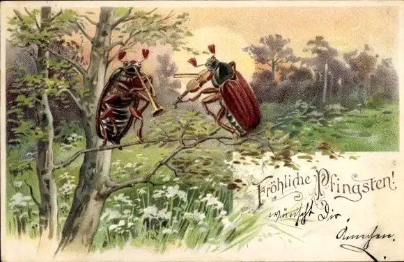 Litho Glückwunsch, Pfingsten, Maikäfer