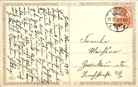 Ansichtskarte, Postkarte, Glückwunsch, Gratulation, Anerkennung, Weihnachten, Christfest