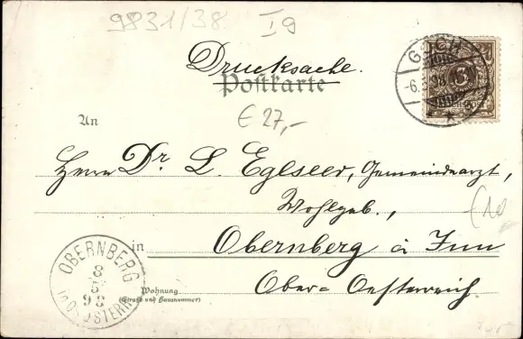 Zustand, siehe Scan, gelaufen, 1898 - ca 14 cm X 9 cm