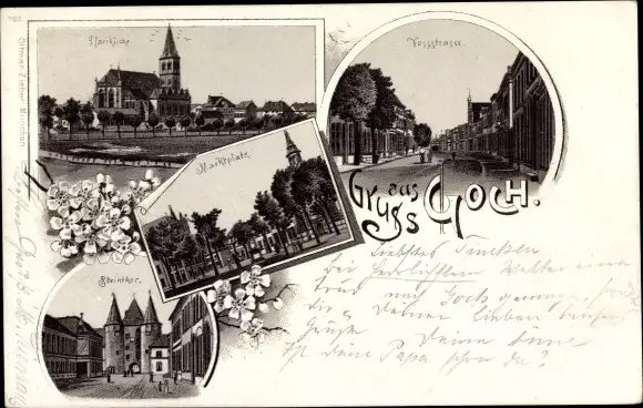 Litho Goch am Niederrhein, Pfarrkirche, Marktplatz, Steintor, Vossstraße