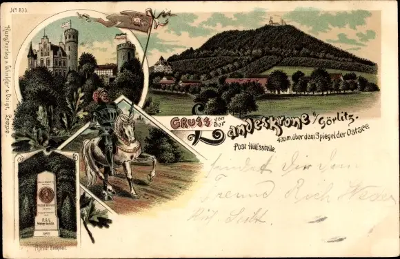 Litho Görlitz Sachsen, Landeskrone, Ritter, Körner Denkmal