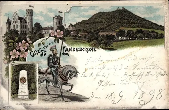 Litho Görlitz in der Lausitz, Landeskrone, Körner Denkmal, Ritter, Restaurant