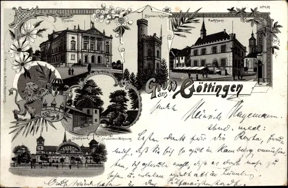 Litho Göttingen in Niedersachsen, Rathaus, Bismarckturm, Theater, Stadtpark