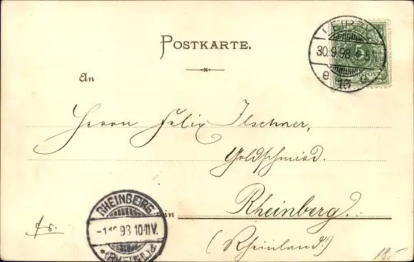 Zustand, siehe Scan, gelaufen, 1898 - ca 14 cm X 9 cm