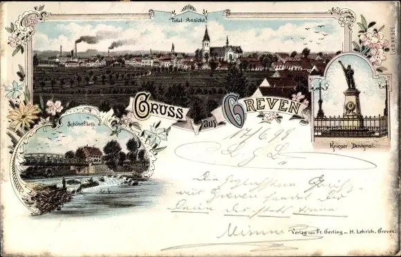 Litho Greven in Westfalen, Kriegerdenkmal, Totalansicht, Wehr