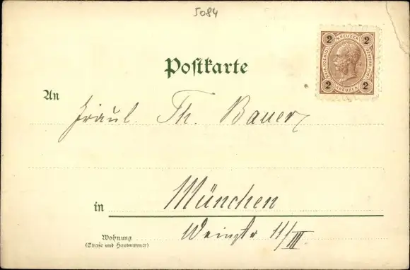 ungelaufen, beschrieben, mit Briefmarke, Eckknick links oben, sonst guter Zustand