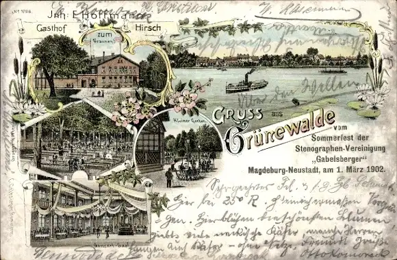 Litho Grünewalde Schönebeck an der Elbe, Gasthof zum braunen Hirsch