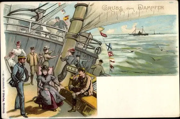 Litho Gruß vom Dampfer, Passagiere an Deck
