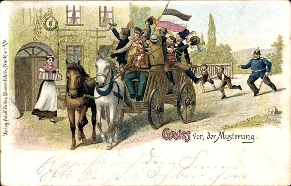 Litho Gruß von der Musterung, Karren, Bierausschank