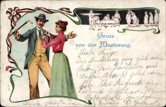 Litho Gruß von der Musterung, Sodlaten, Frau