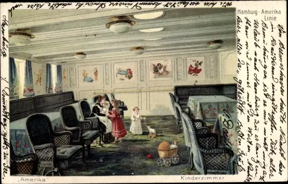 Litho HAPAG Dampfer Amerika, Passagierschiff, Kinderzimmer