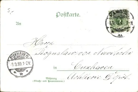 Zustand, siehe Scan, gelaufen, 1899 - ca 14 cm X 9 cm