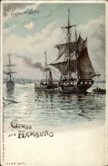Ansichtskarte, Postkarte, Hafen, Schiffe, Boote, Dampfer, Boot