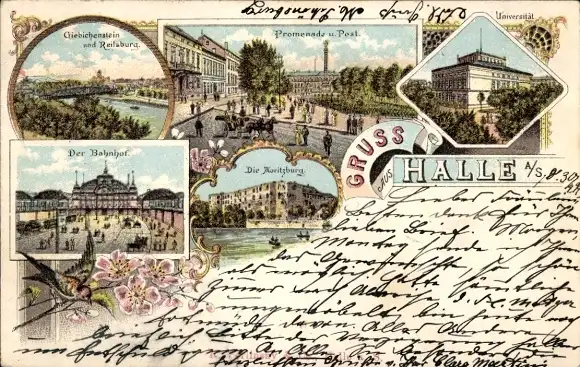 Litho Halle an der Saale, Bahnhof, Giebichenstein, Reifsburg, Promenade, Post, Universität
