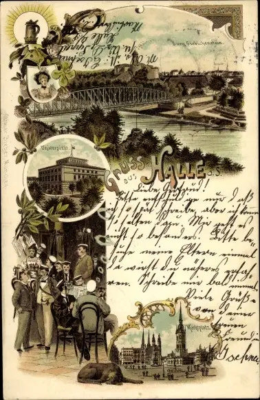 Litho Halle an der Saale, Burg Giebichenstein, Universität, Marktplatz, Studenten