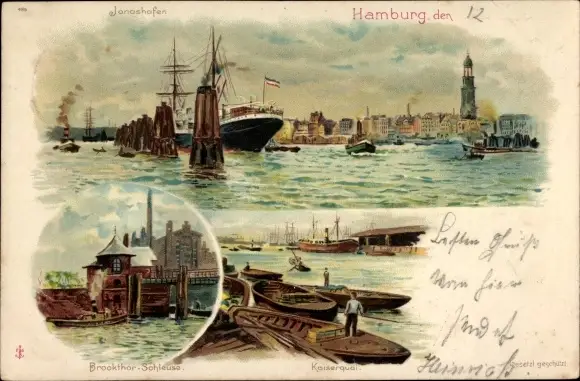 Litho Hamburg Mitte Altstadt, Jonashafen, Kaiserquai, Brookthor Schleuse