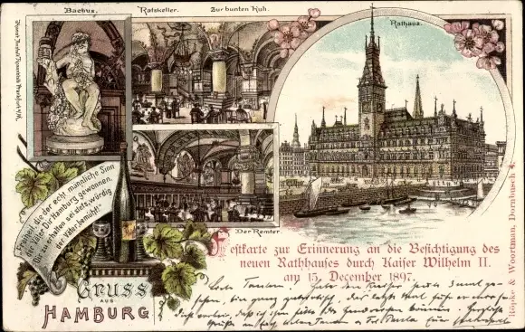 Litho Hamburg Mitte Altstadt, Remter, Ratskeller, Rathaus