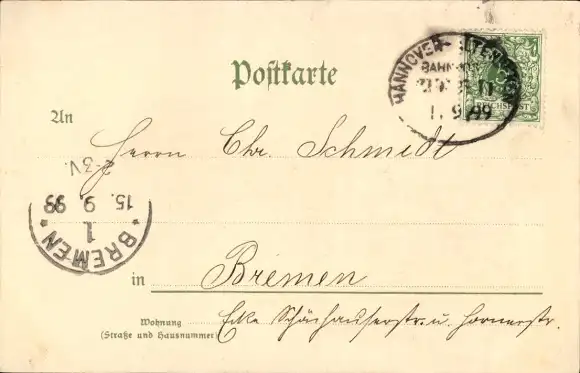 Zustand, siehe Scan, gelaufen, 1899 - ca 14 cm X 9 cm