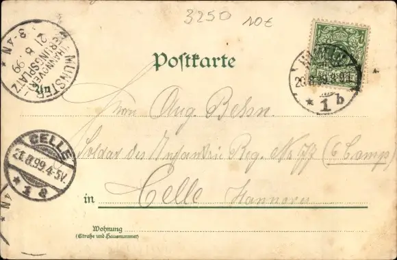 Zustand, siehe Scan, gelaufen, 1899 - ca 14 cm X 9 cm