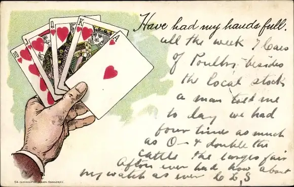 Litho Hand mit Spielkarten, Herz
