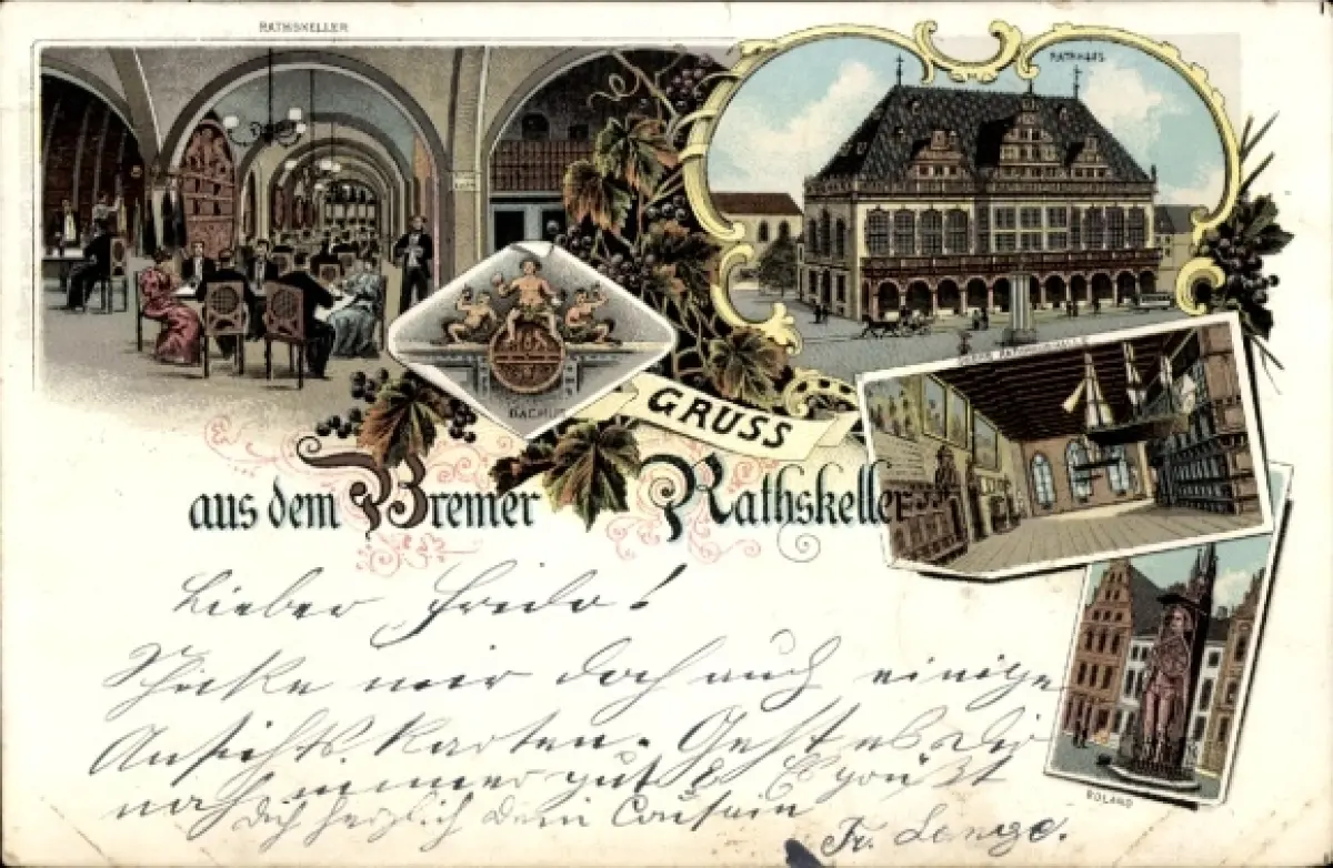 Litho Hansestadt Bremen, Bremer Ratskeller, Rathaus, Obere Rathaushalle, Roland