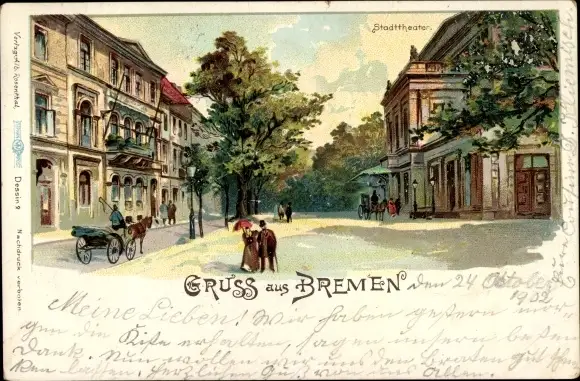 Litho Hansestadt Bremen, Stadttheater, Kutsche