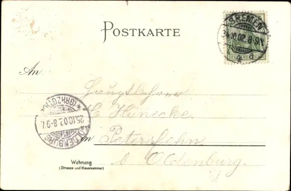 Zustand, siehe Scan, gelaufen, 1902 - ca 14 cm X 9 cm