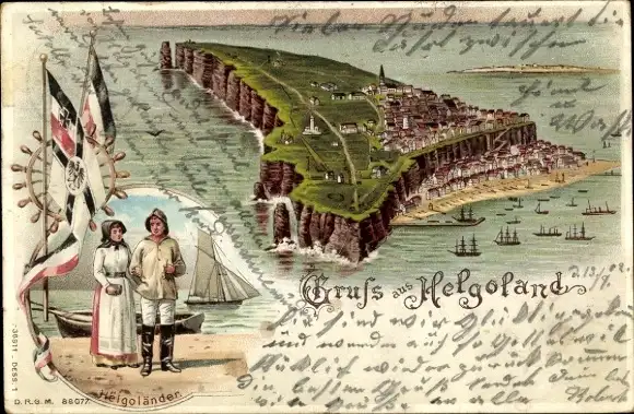 Litho Helgoland in Schleswig Holstein, Insel, Helgoländer, Fahnen