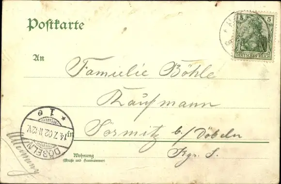 Zustand, siehe Scan, gelaufen, 1902 - ca 14 cm X 9 cm