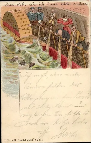 Litho Hier stehe ich, ich kann nicht anders, Seekranke Passagiere