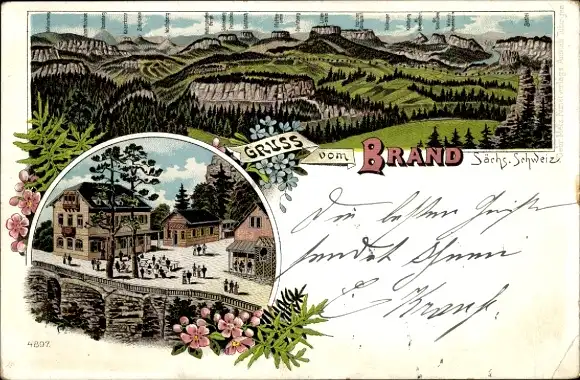 Litho Hohnstein Sächsische Schweiz, Brand, Gasthaus, Berge