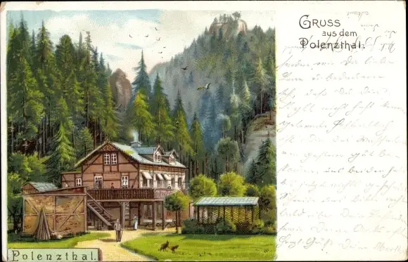 Litho Hohnstein Sächsischen Schweiz, Polenztal